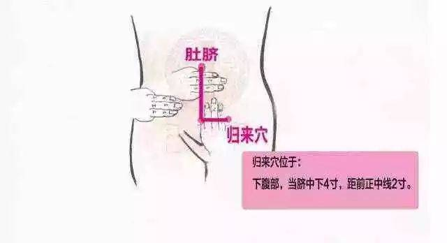 气滞血瘀型:取穴内关穴、中极穴、天枢穴、子宫穴。中极、天枢、子宫三穴可以一起灸,内关穴单独灸。可加配血海穴、太冲穴。