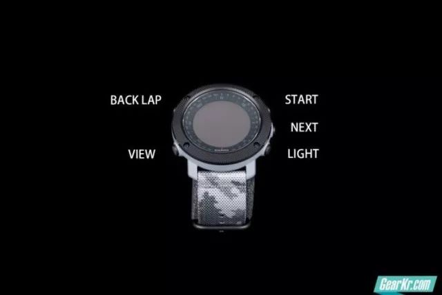 按键设计继续保持着颂拓传统的按键分布,表圈周围为5个功能按键。左侧两个分别为BACK LAP、VIEW按键;右侧则分布着START、NEXT、LIGHT三个按键。