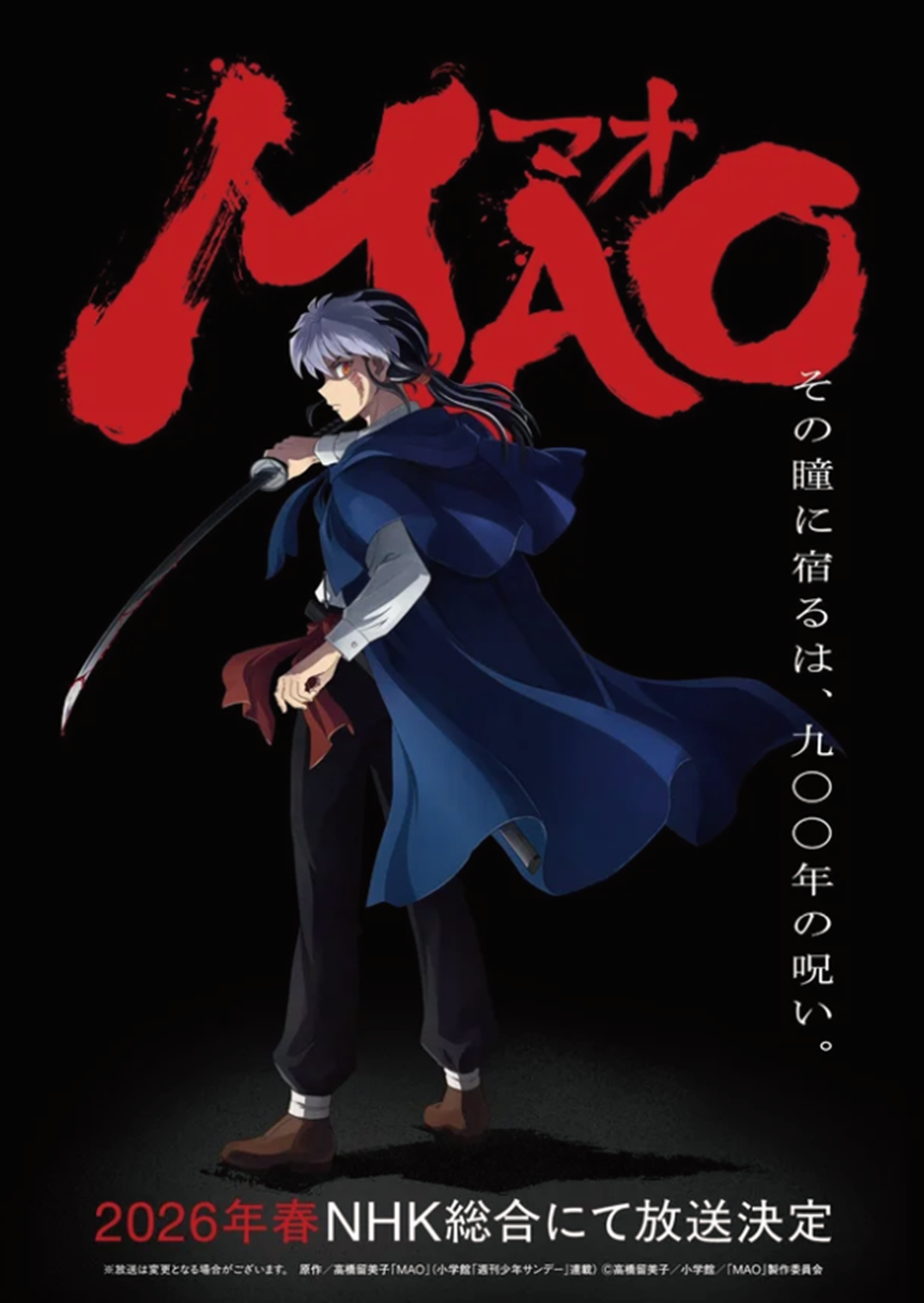由高桥留美子创作的漫画《MAO》宣布改编为TV动画,将于2026年春季正式播出。本作动画由 SUNRISE(日升)制作,这也是继《犬夜叉》之后,日升首次再度负责高桥留美子作品的动画化。随着消息公开,官方同步释出了先导视觉图与先导PV。
