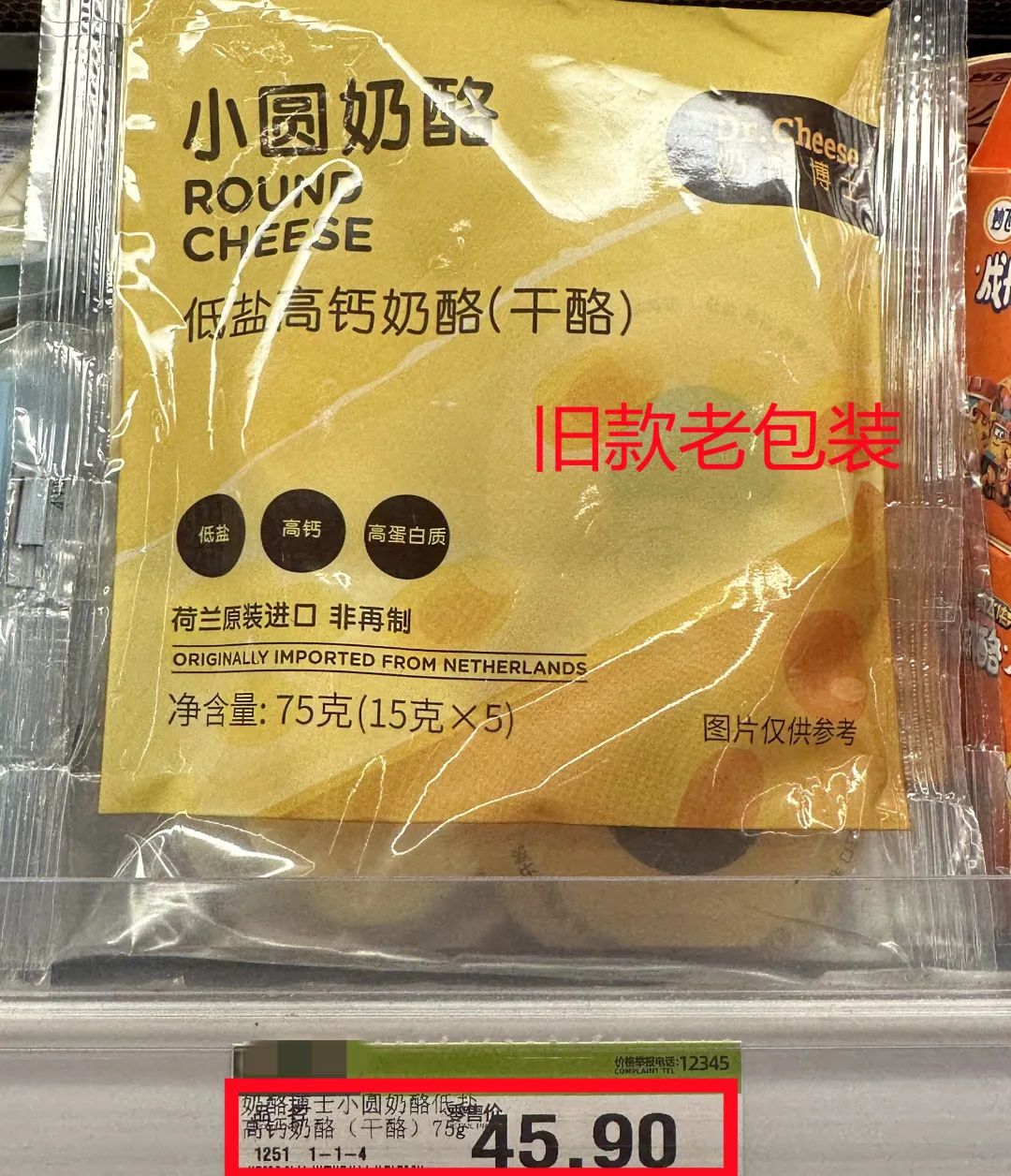 因为是100%干酪,线下超市要卖到45.9元/袋,还是旧款,有点心疼: