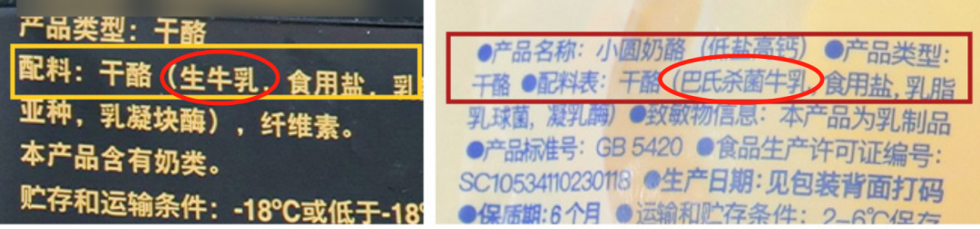 发现咱这款奶酪的配料表是巴氏杀菌牛乳,而别款的奶酪配料表中有的是生牛乳(牛奶)。