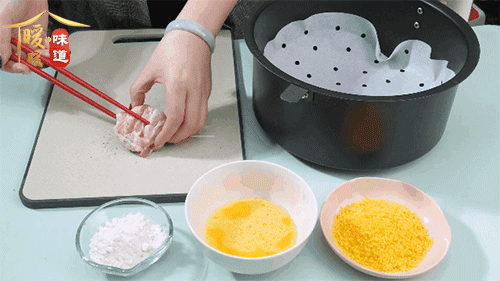 【炸芝士猪排】腌制好的猪排+1块小圆奶酪,蘸点面粉、蛋液、面包糠;