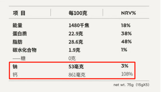 这款奶酪861mg钙含量,却只有53mg钠含量,16倍的钙钠比,在奶酪界也是相当震撼的存在了!