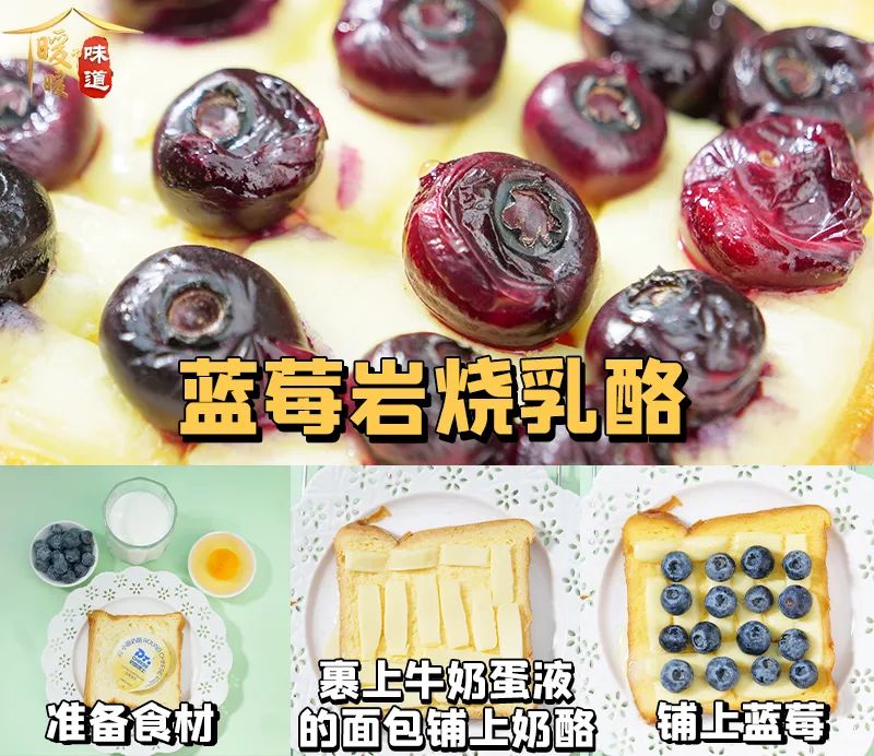 【蓝莓乳酪吐司】裹上蛋液的吐司,铺上小圆奶酪,空气炸锅8分钟/烤箱15分钟就好了,香喷喷奶呼呼,暖暖每天早起就为了它。