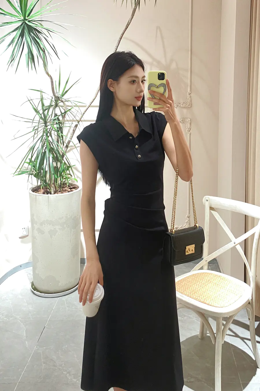 着一袭黑裙, 如夜间精灵| 裙摆轻拂间, 演绎着属于自己的华章。