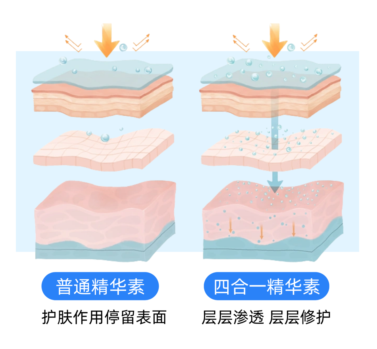 左颜右色四合一精华素是四维护肤体系,层层渗透;