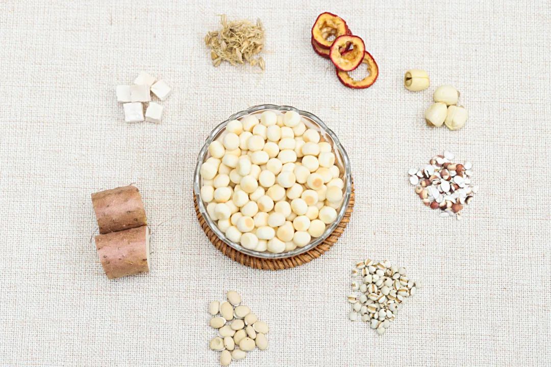 山药、芡实、莲子: