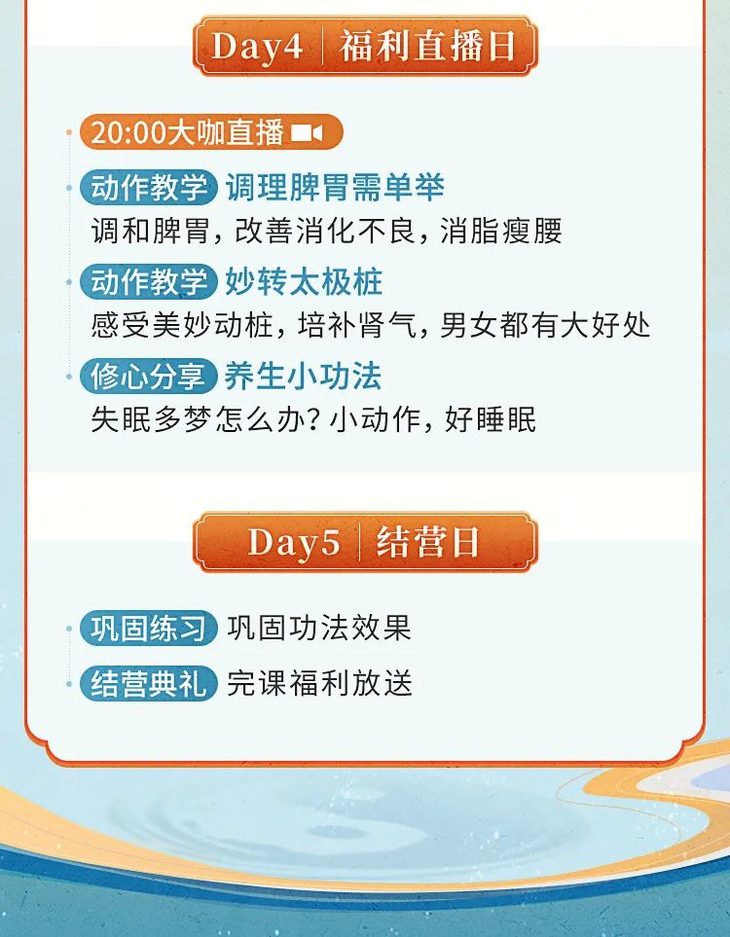 那么,强烈推荐你加入外练筋骨皮,内补精气·血,提升免疫力的《5天·逆龄养生太极营》——