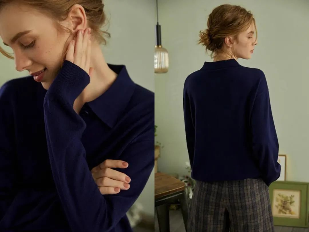- 超细美丽诺纯羊毛宽松Polo衫 -