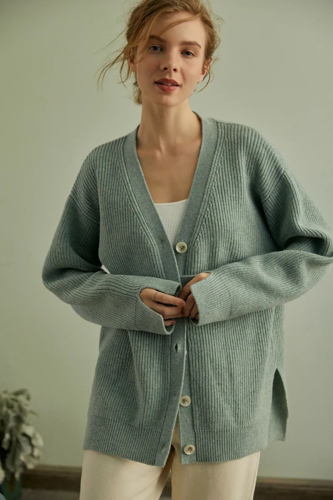 -超细美丽诺纯羊毛罗纹廓形开衫 -
