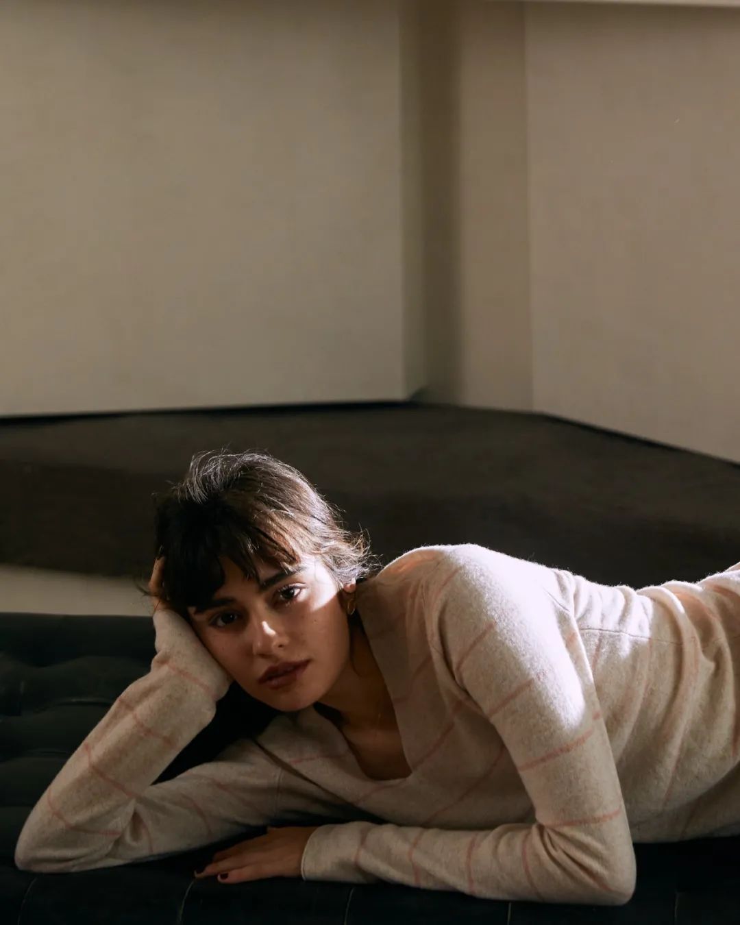 优雅的V领衫是衣柜中不能缺少的必备单品。