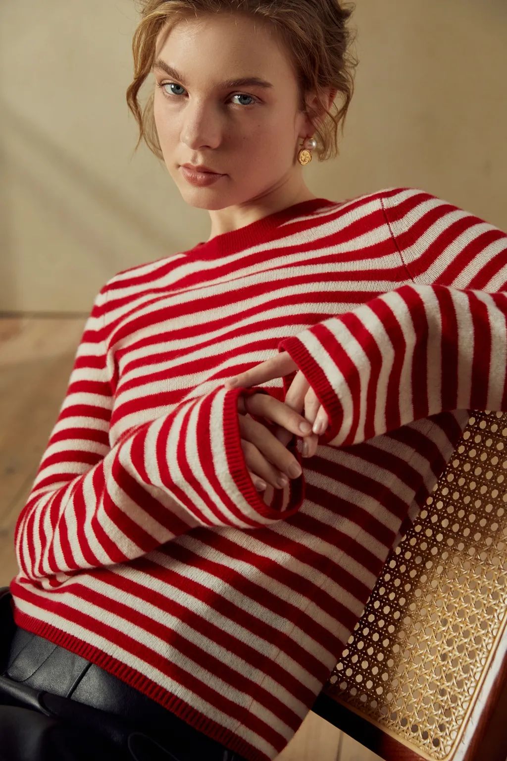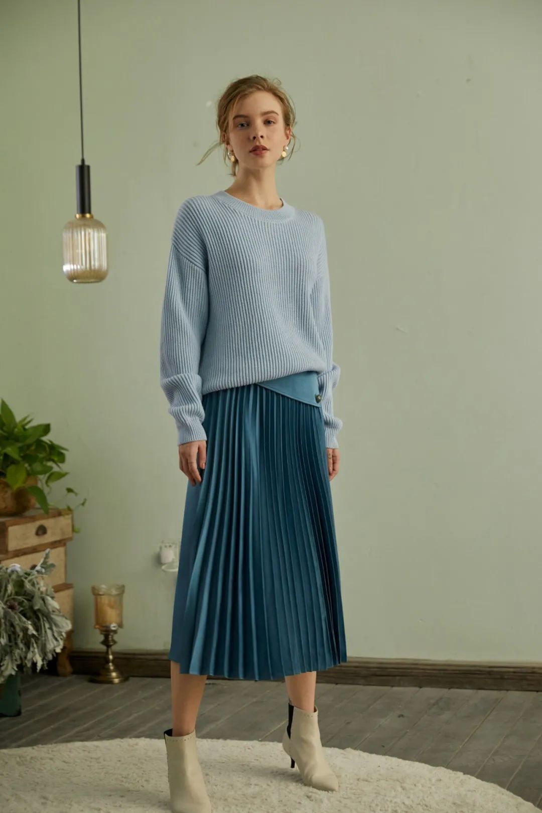 -超细美丽诺纯羊毛粗针圆领衫 -