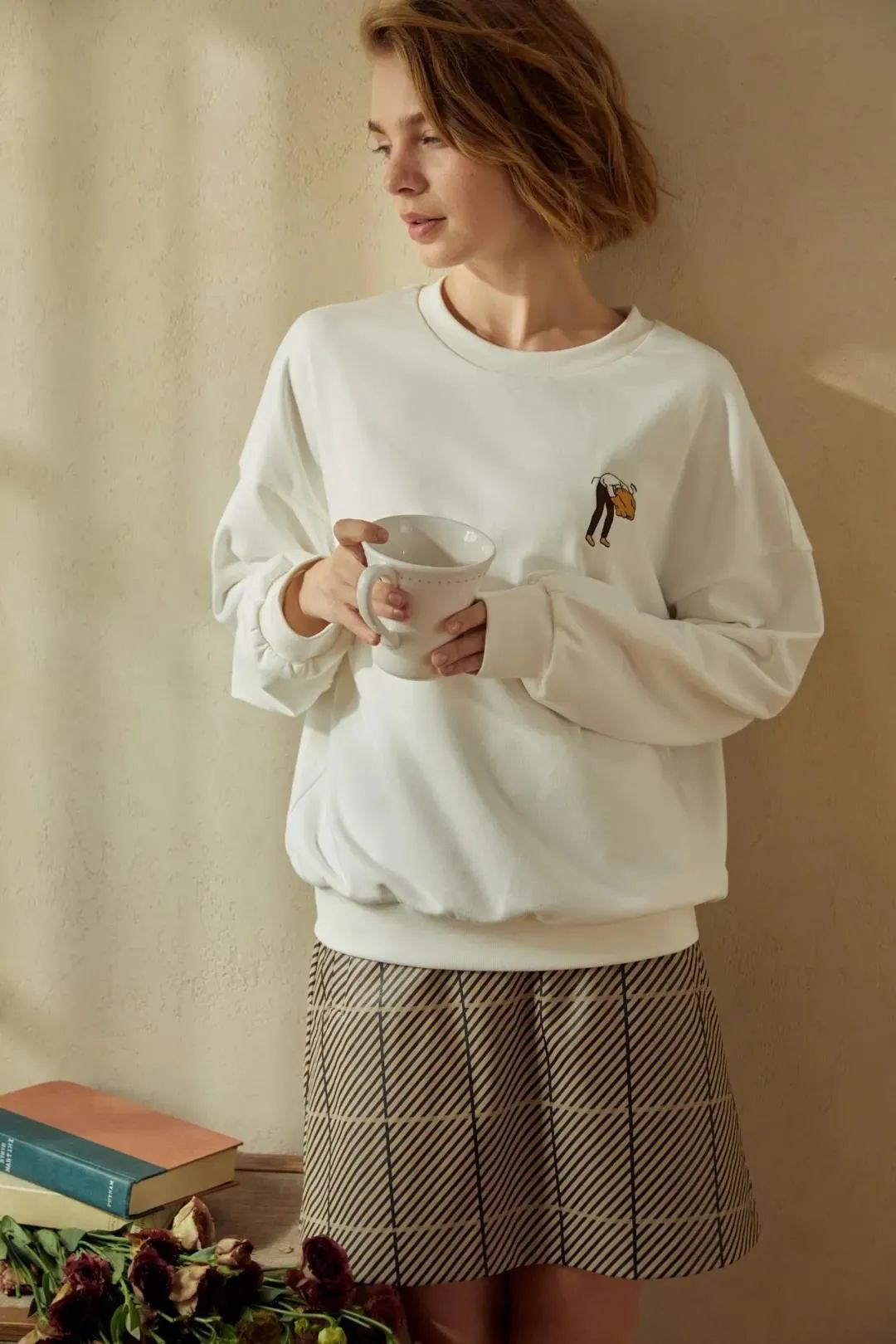 袖口是微微张开的小喇叭,穿起来轻松又慵懒。