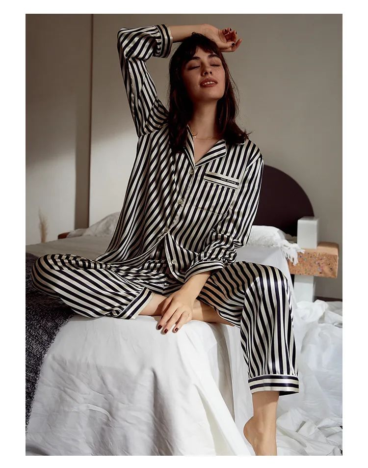 - 天然触感重磅真丝长袖睡裙家居服 -