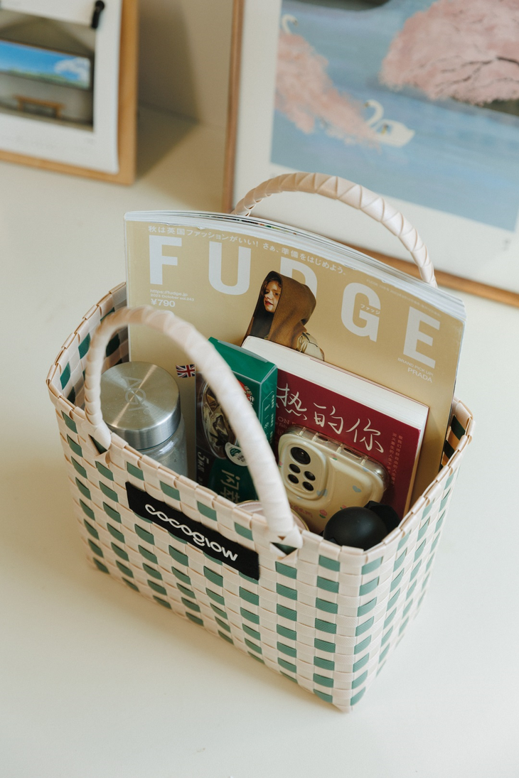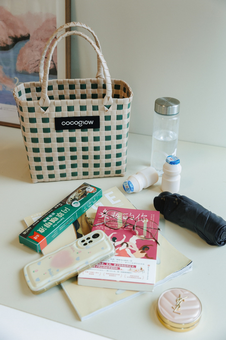 更特别的是,cocoglow的编织包没有塑料感,色泽和纹路都细腻,比那些几十块的更有质感且耐用。