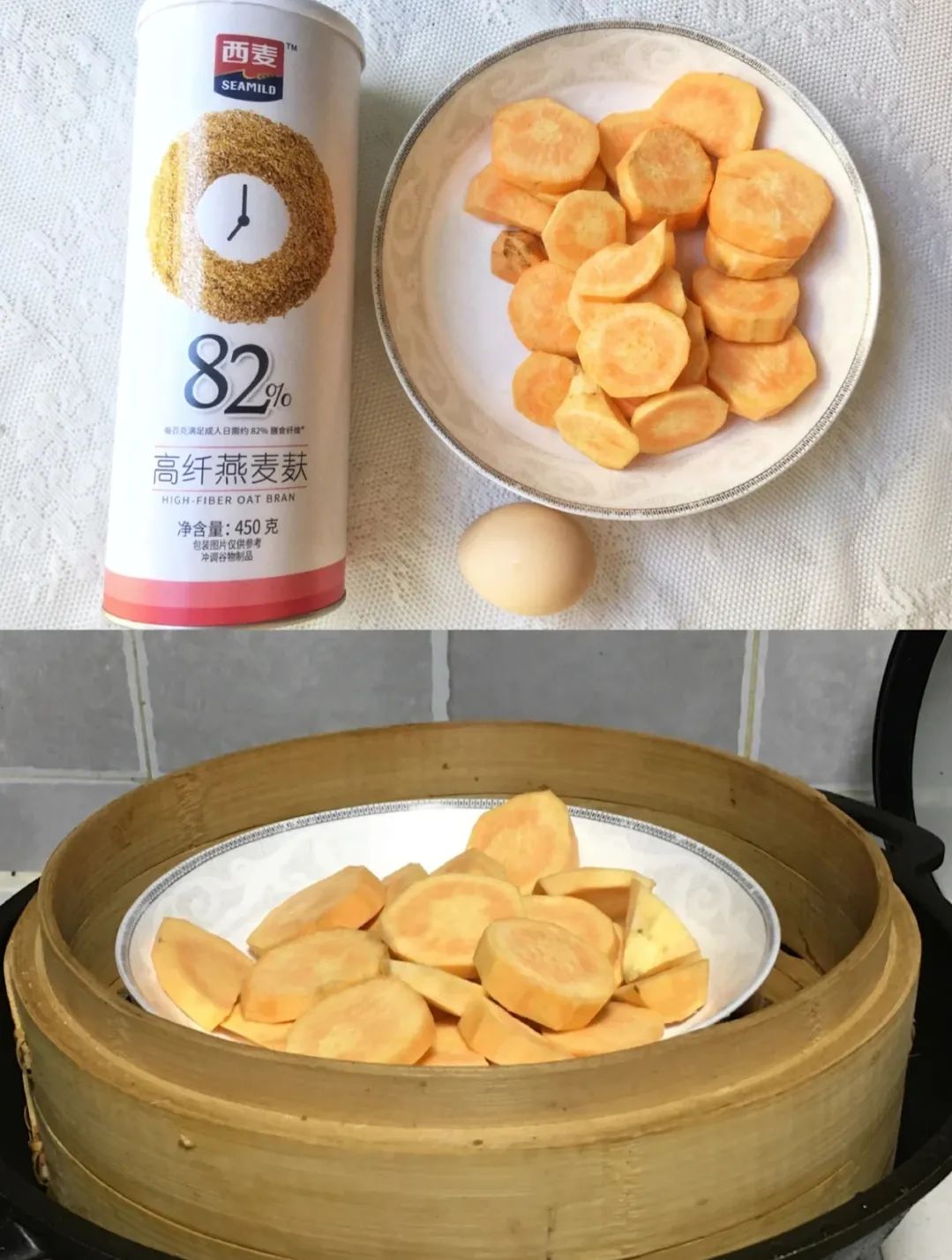 红薯1个、鸡蛋1个、西麦燕麦麸30克