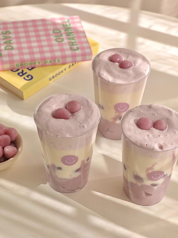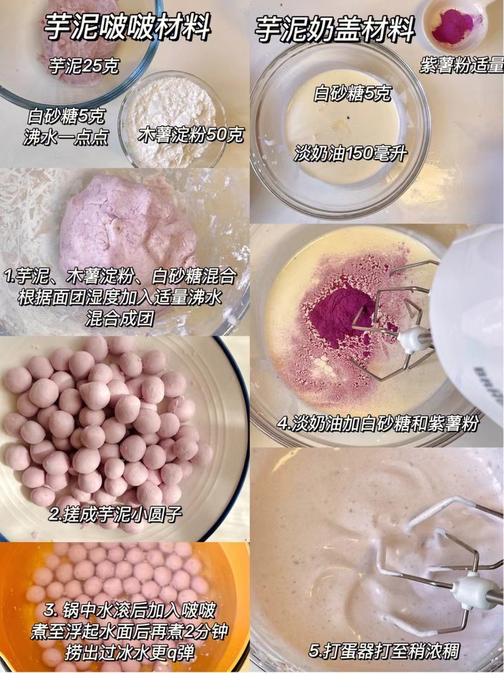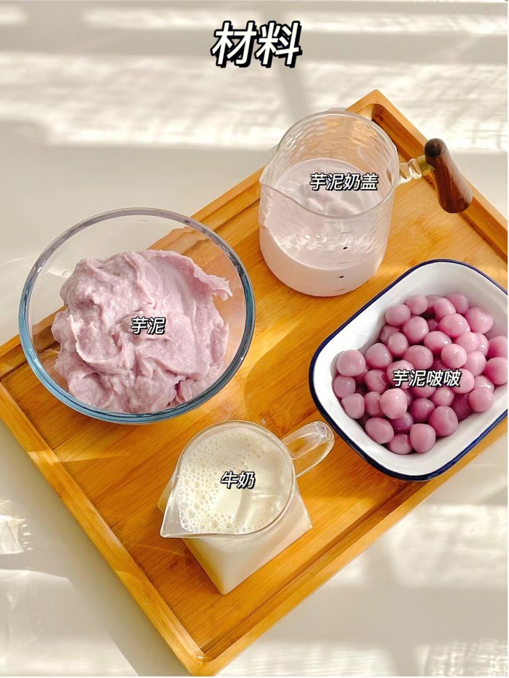 👉材料:芋泥,芋泥啵啵,芋泥奶盖,纯牛奶适量