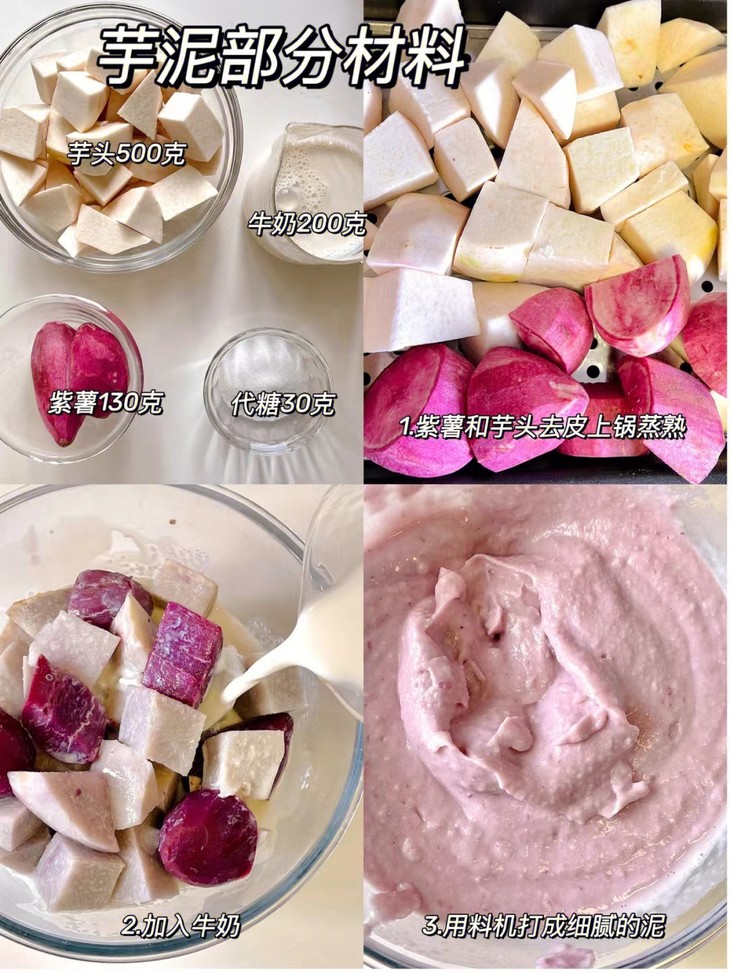 🌼芋泥:芋头500g,牛奶200g,紫薯130g,代糖30g