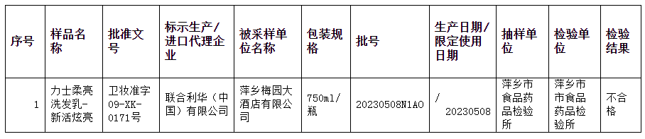 几个月前,江西省药监局的一次日化产品抽样检查中,一款名为“力士柔亮洗发乳-新活炫亮”的洗发产品被检测出不合格。