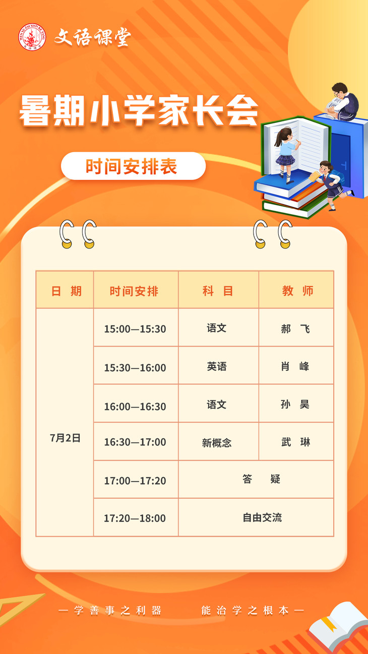 扫描下方二维码,进入文语课堂暑期家长会线上直播间: