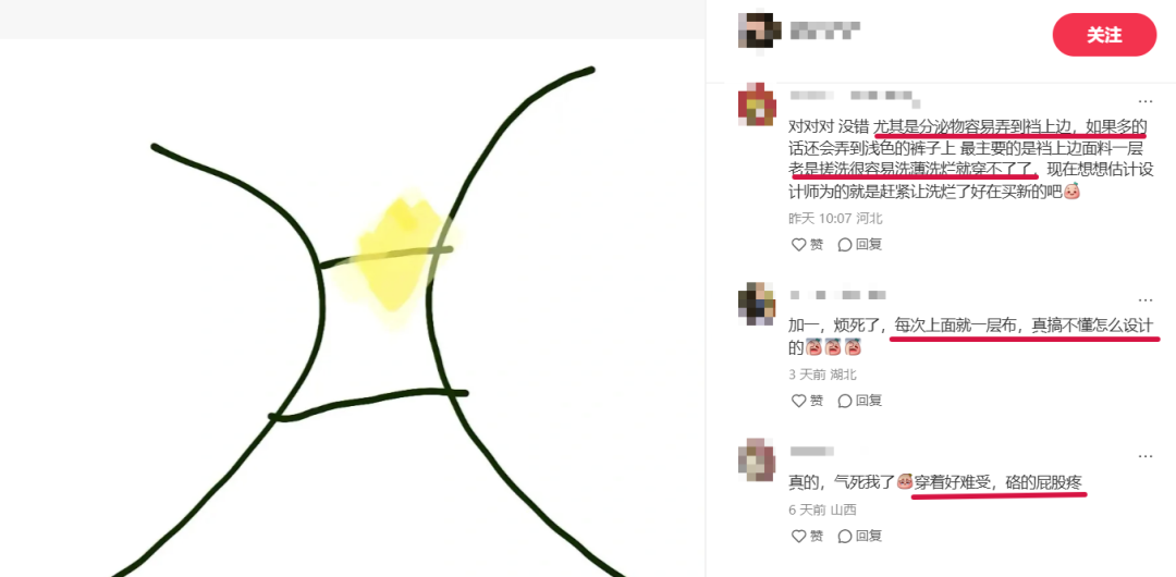 每天为了清洗分泌物,频繁揉搓裆部,没多久裆部面料都被搓就破了。