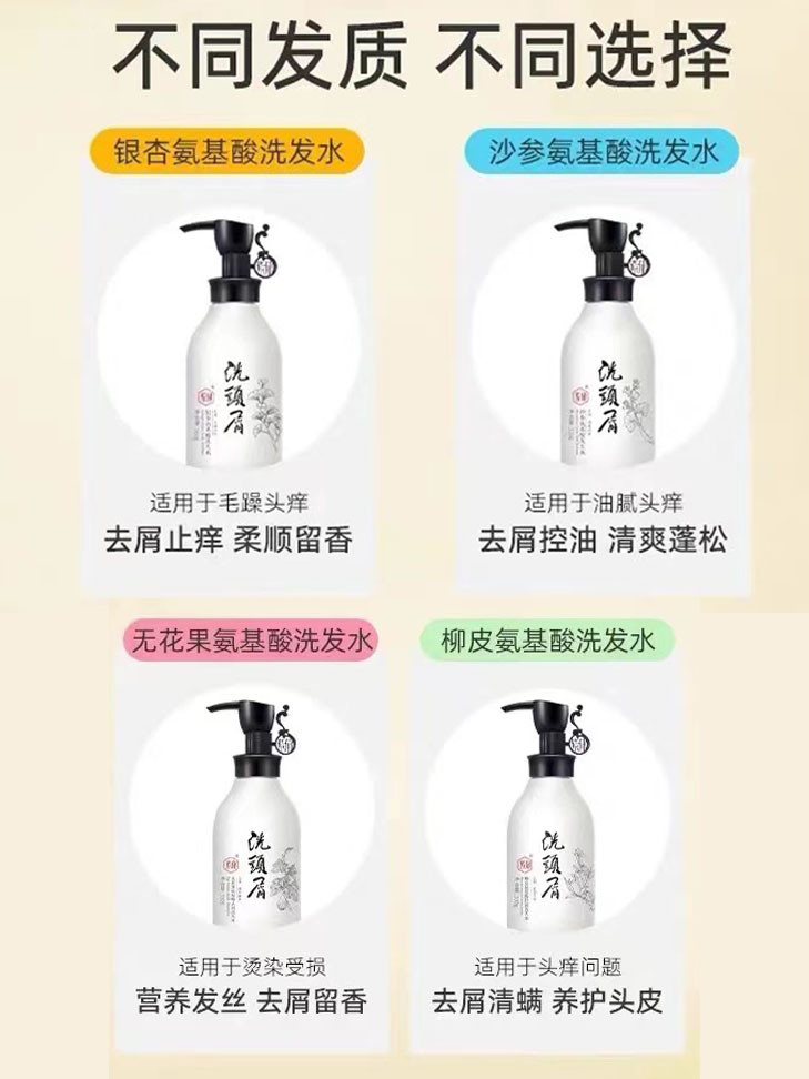 甄选柳皮精粹,有效改善顽固头屑问题柳皮x无患子x氨基酸,精致去屑清螨,养护头皮。