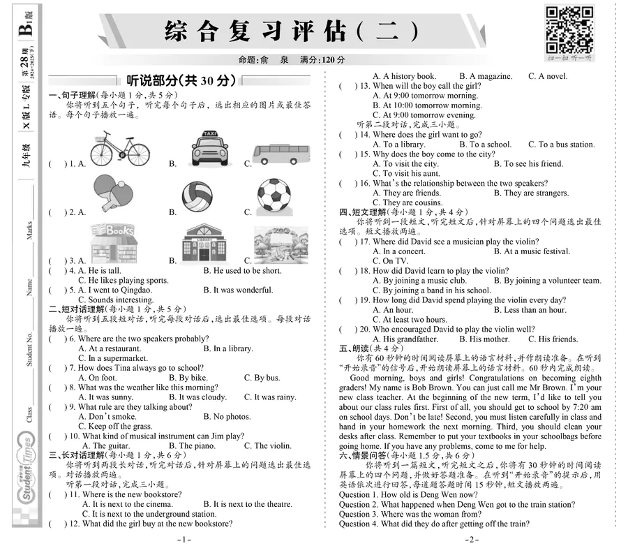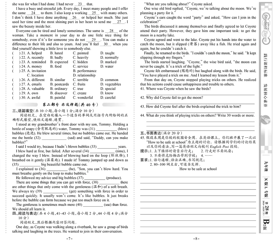 《双语学习报》九年级 X版L专版 第28期