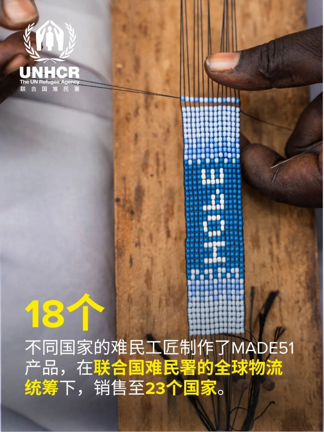 在联合国难民署支持的MADE51创新平台上,他们用传统技艺,把对和平的想象、对生活的坚持,一针一线地缝进了我们每一个人的手心里。