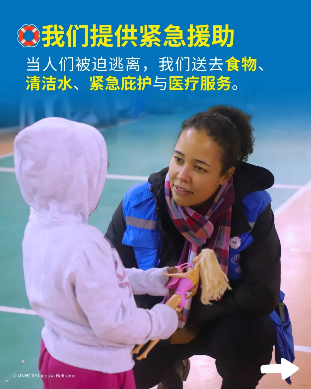 我身上的蓝色背心,灵感来自联合国难民署在一线的工作人员,