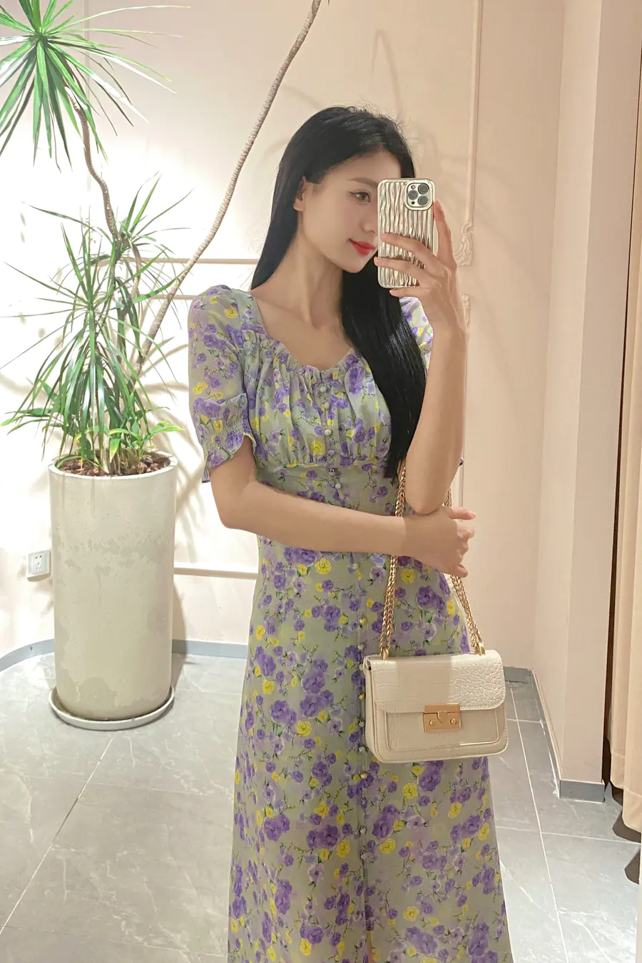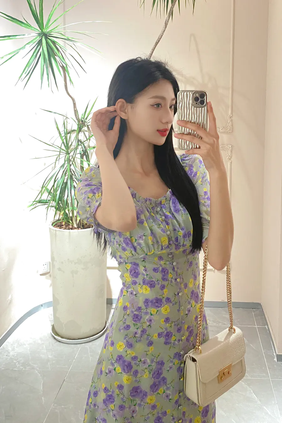 碎花裙就像是夏日的入场券💞桑蚕丝#法式连衣裙#