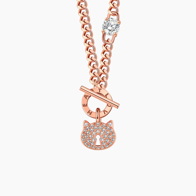 猫锁项链白金款/玫瑰金款:作为好闺蜜,当然要时常一起,解锁生活更多美好经历!一起成长,一起陪伴,然后把明天变得更加美好吧!