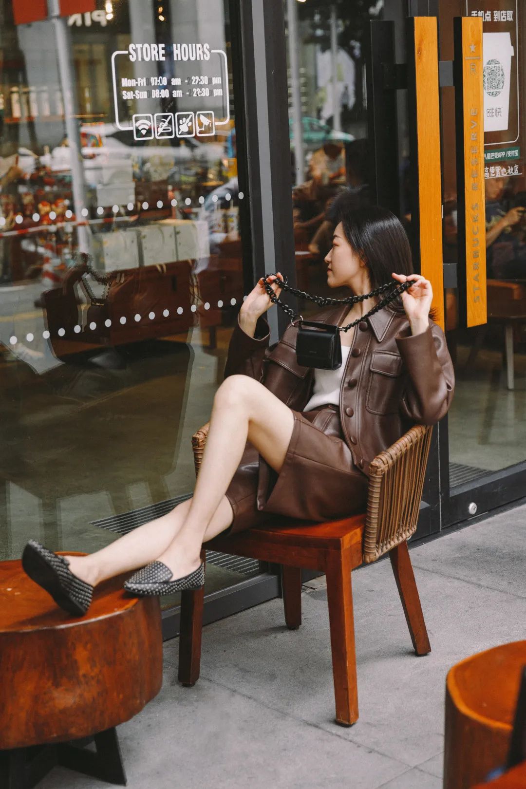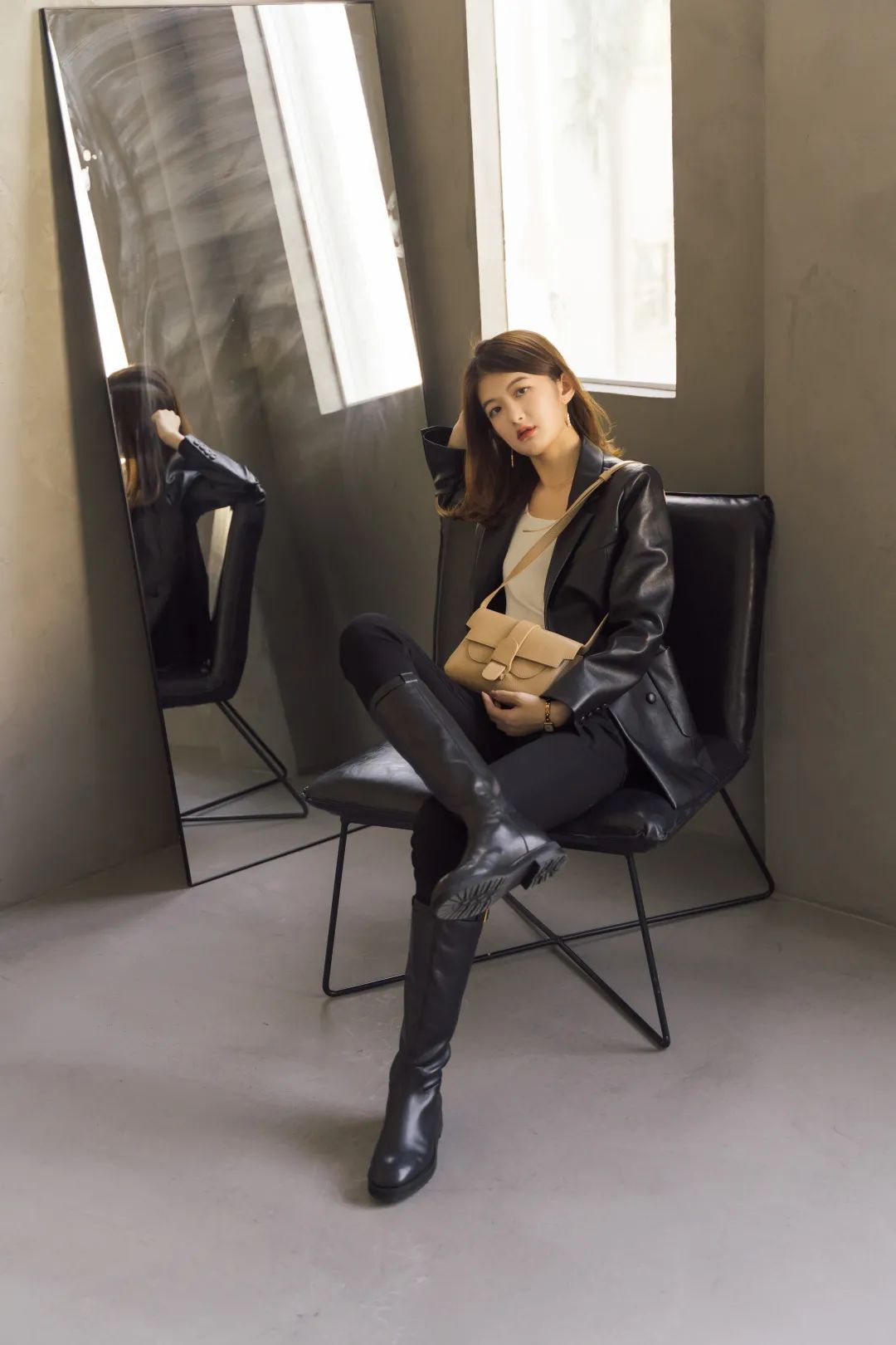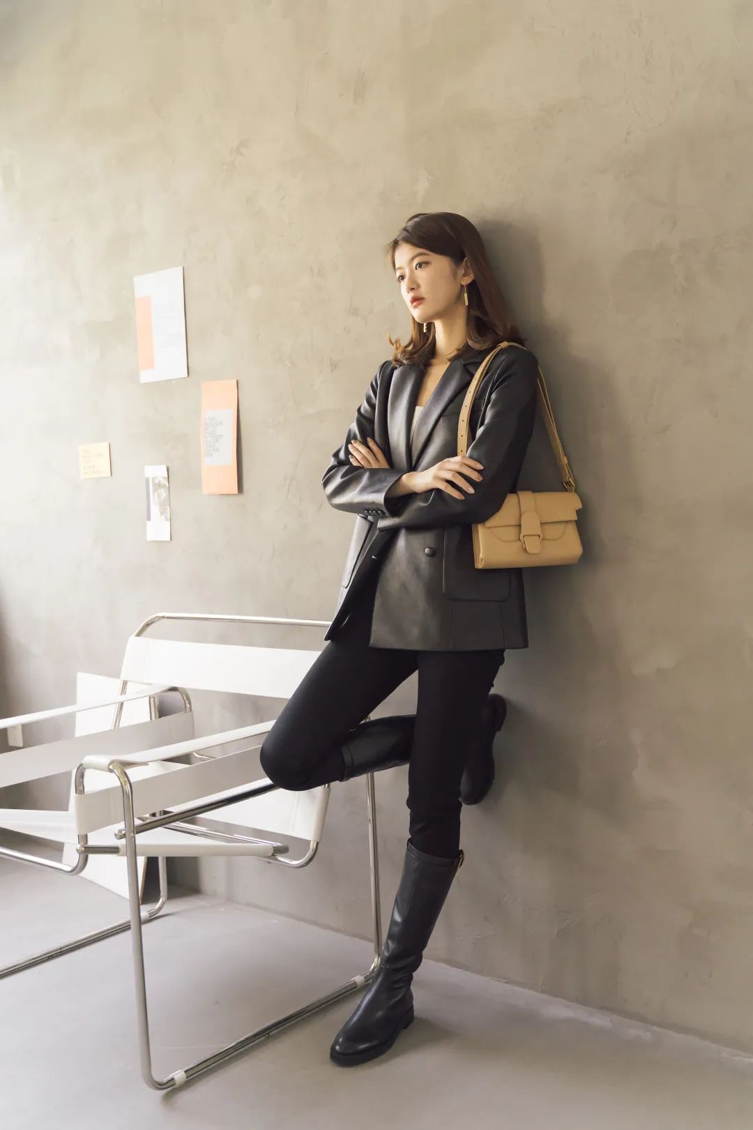 机车风是皮质单品里最常见、最好驾驭的风格。