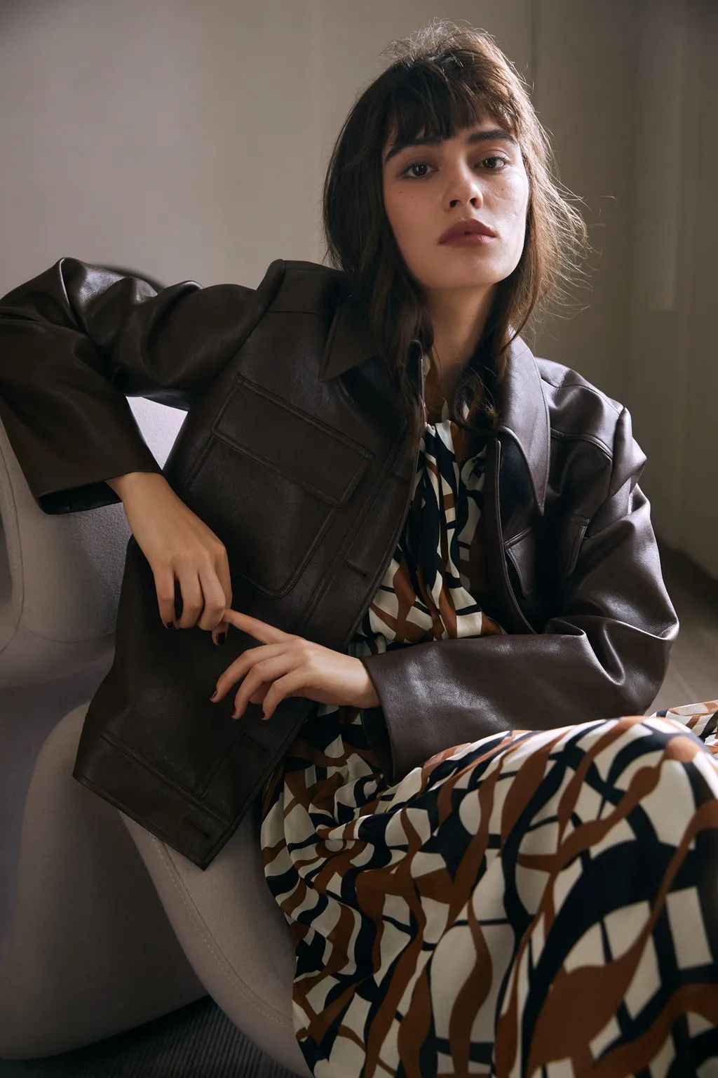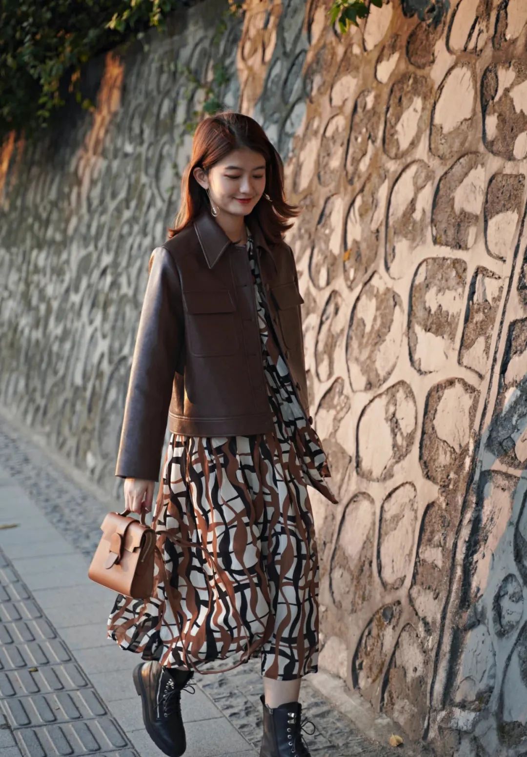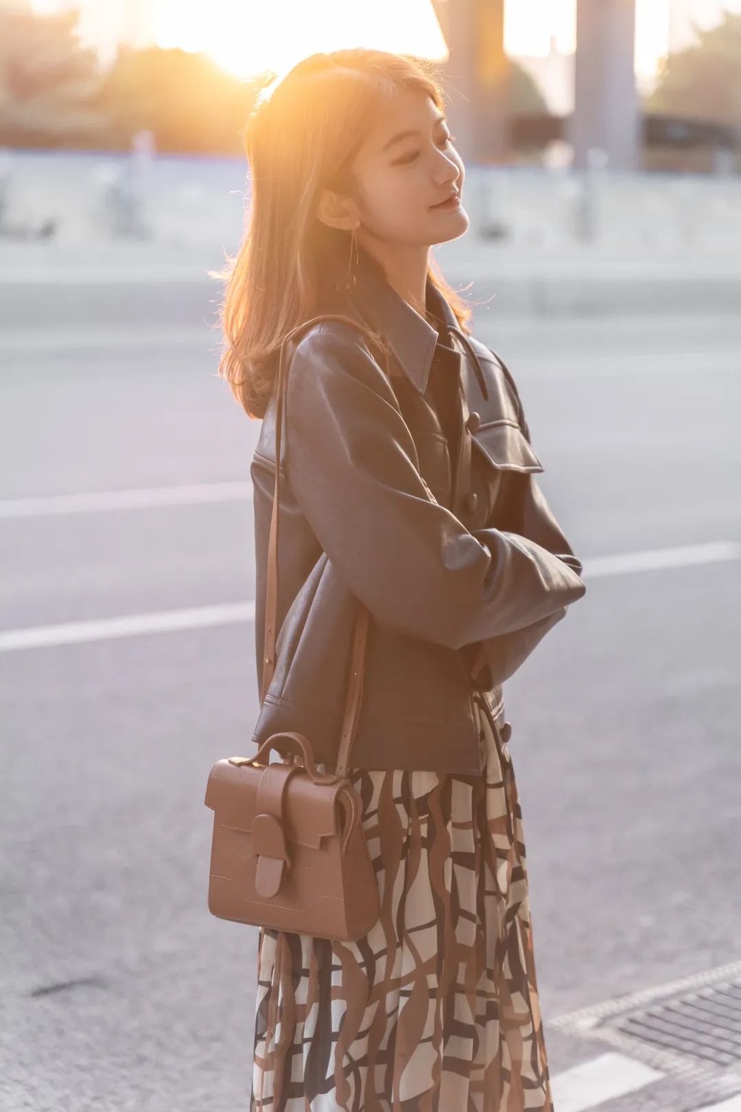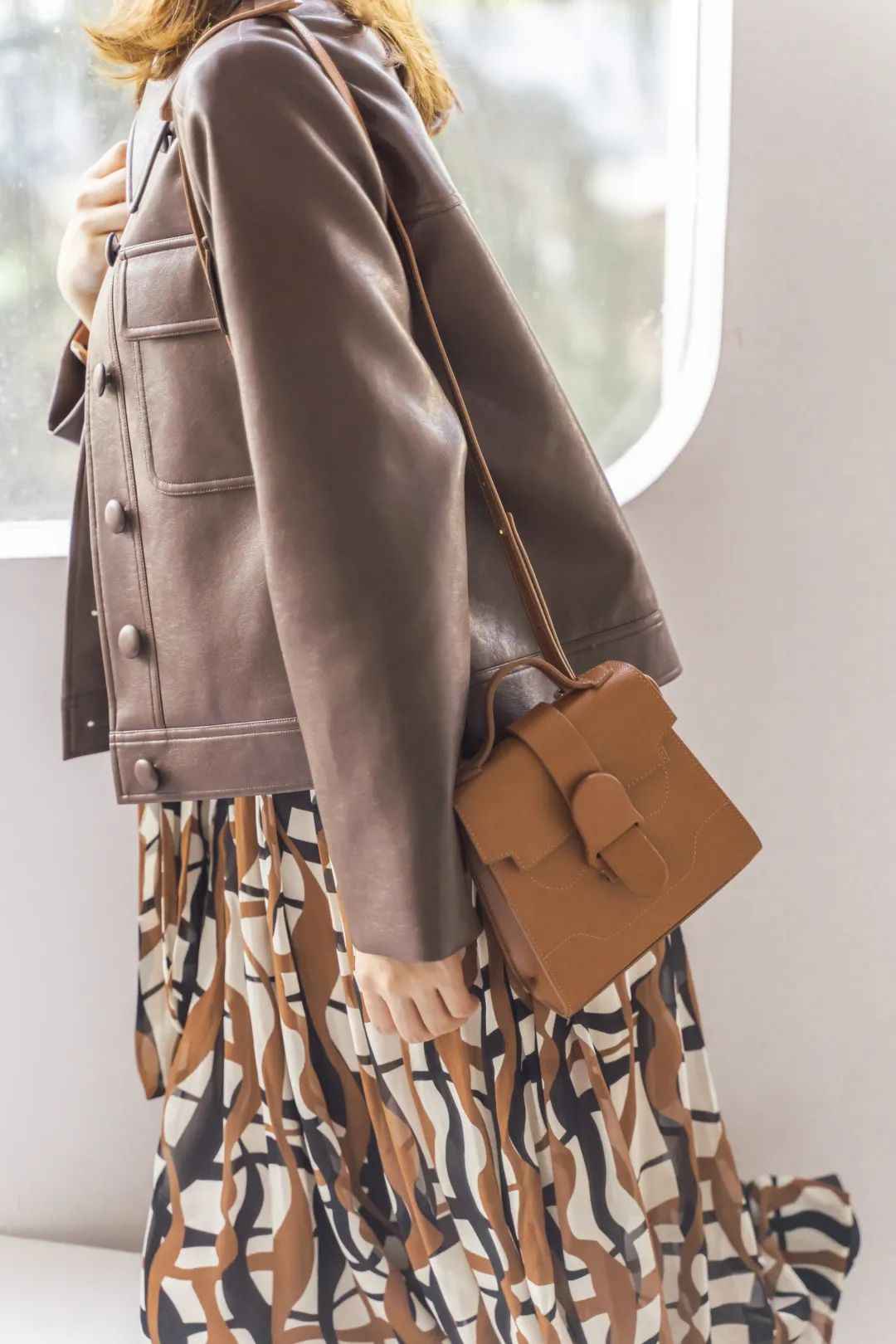 百褶裙本身就自带轻盈感,能够很好地缓解皮革带来的厚重感。