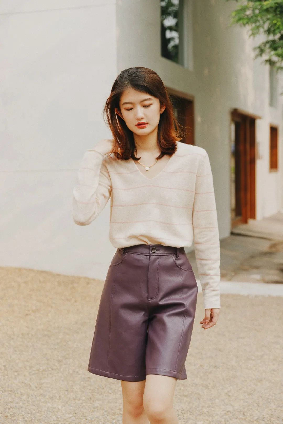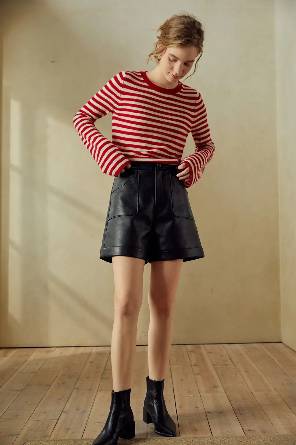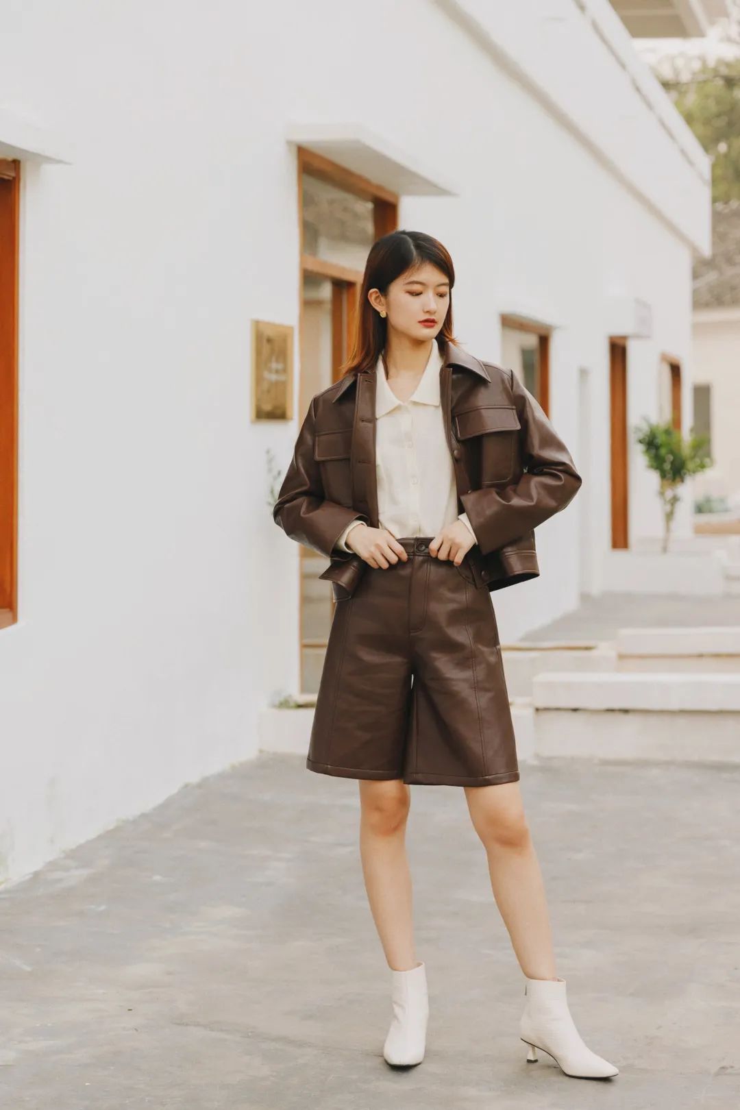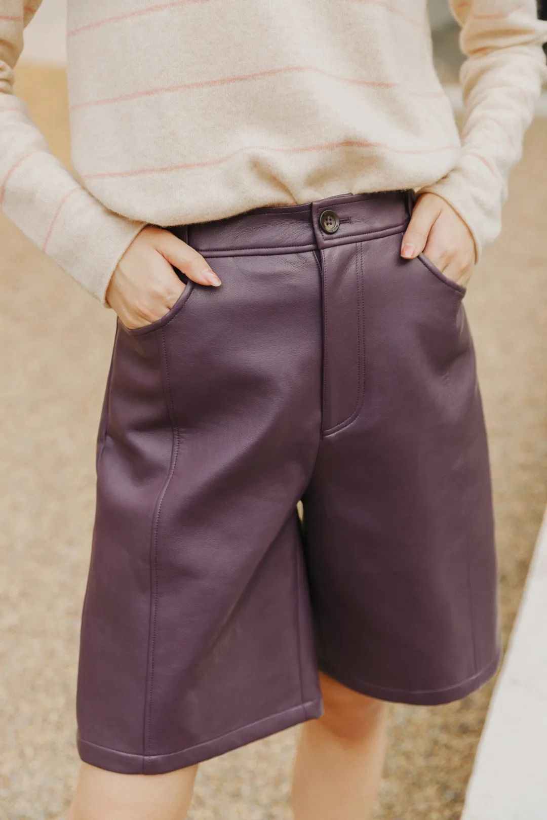 今夏最时兴的百慕大短裤,换成皮质的,秋冬继续穿,
