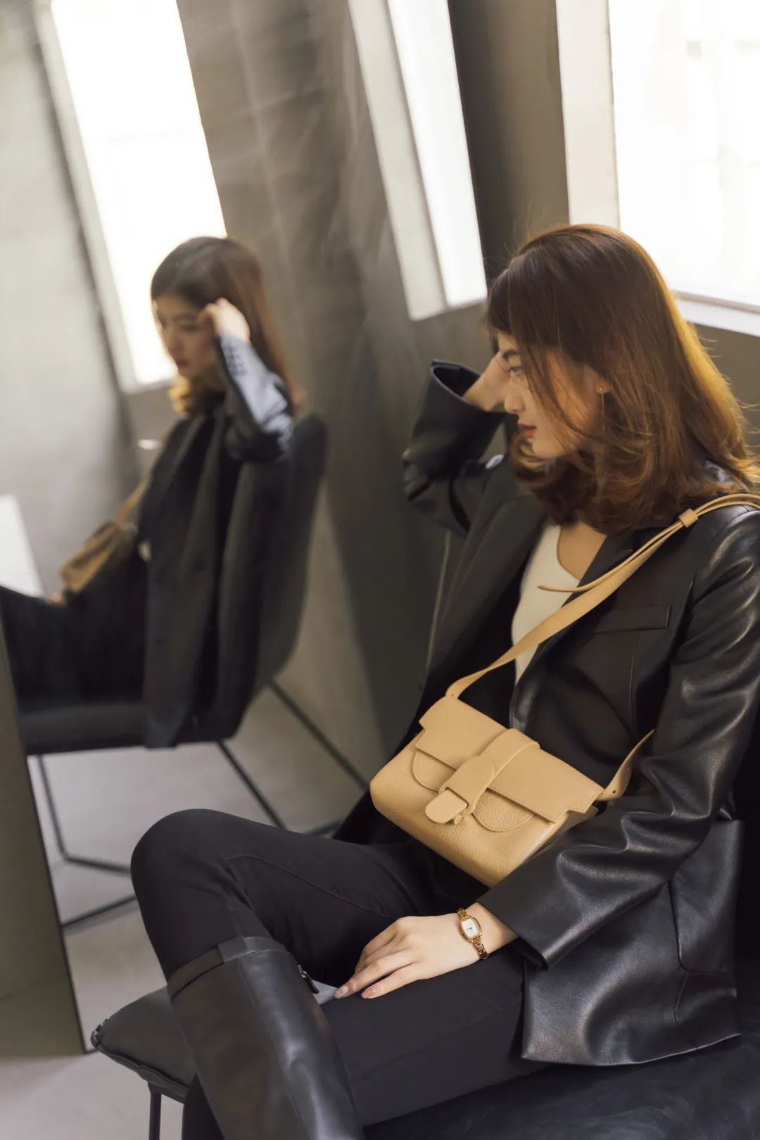 黑色裙子太多的话,可以试试同样百搭的奶咖色。