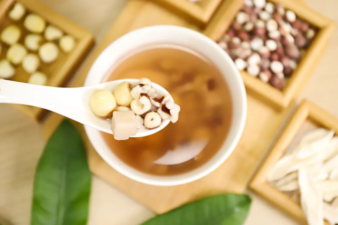 另一个食疗就是中医著名的养脾基础煲汤方——四神汤。它健脾排湿、淡甜软糯、好消化的优点,很多妈妈及老人极其信任它,是一个不容易出差错的食疗方。
