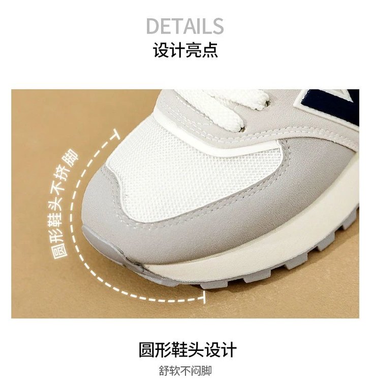 整个鞋子既有休闲时尚的外观,又有运动鞋的功能,可走可跑可跳,不磨脚不挤脚不掉跟。
