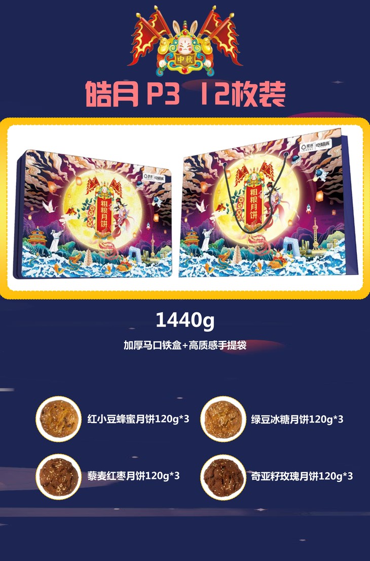 3.皓月(6种口味,马口铁盒+手提袋包装)
