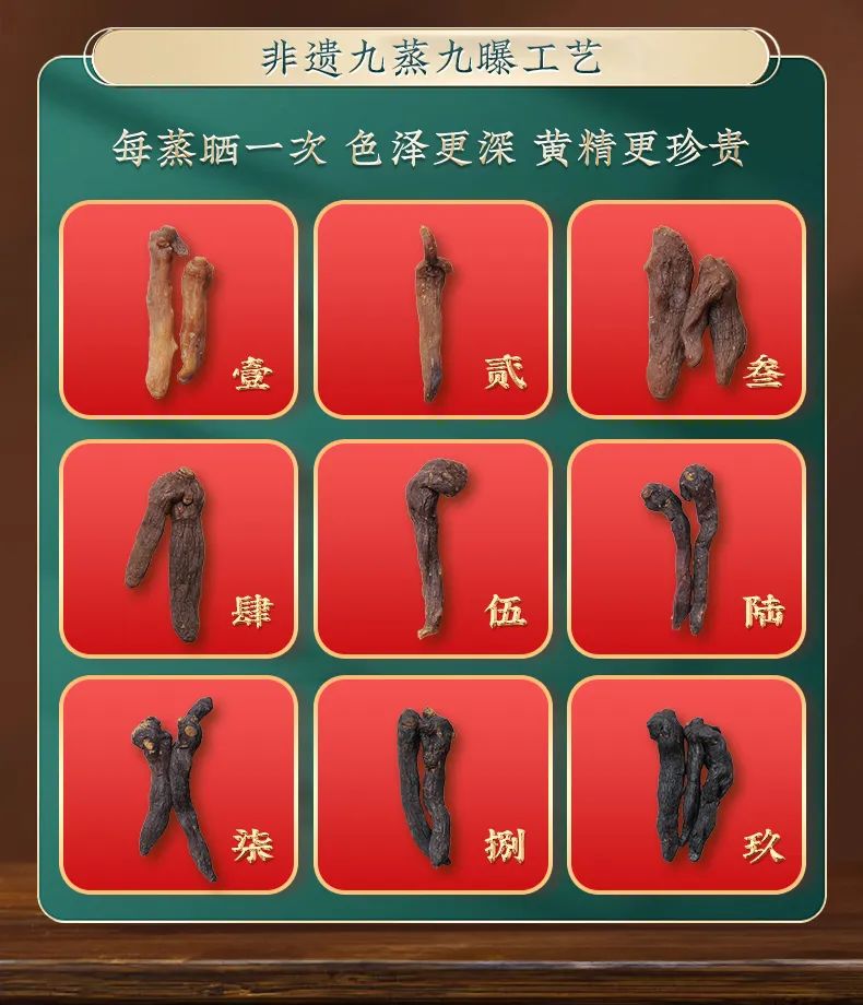 然而,我们这款历经九蒸九晒的泰山黑金黄精,营养不仅没有流失,反而进一步升华。