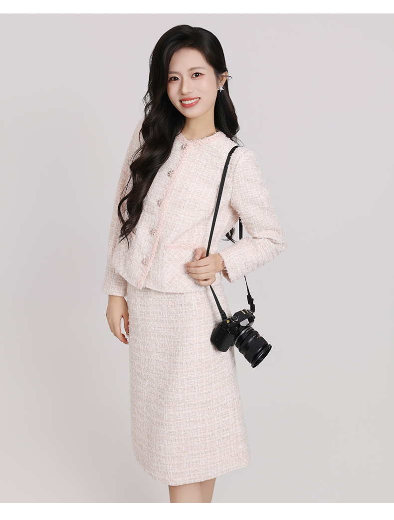 配上同色系高跟鞋,连风都跟着变温柔~是那种 “不用费力凹造型,站着就是画报” 的松弛贵气🌸