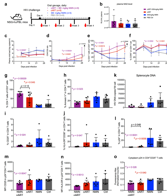 NMN联合cART治疗重建HIV-1感染的人源化小鼠的CD4+T细胞