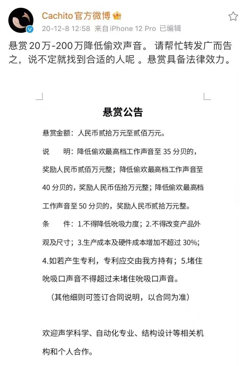 只要能减低「偷欢」的声音,悬赏金额是20-200万不等。
