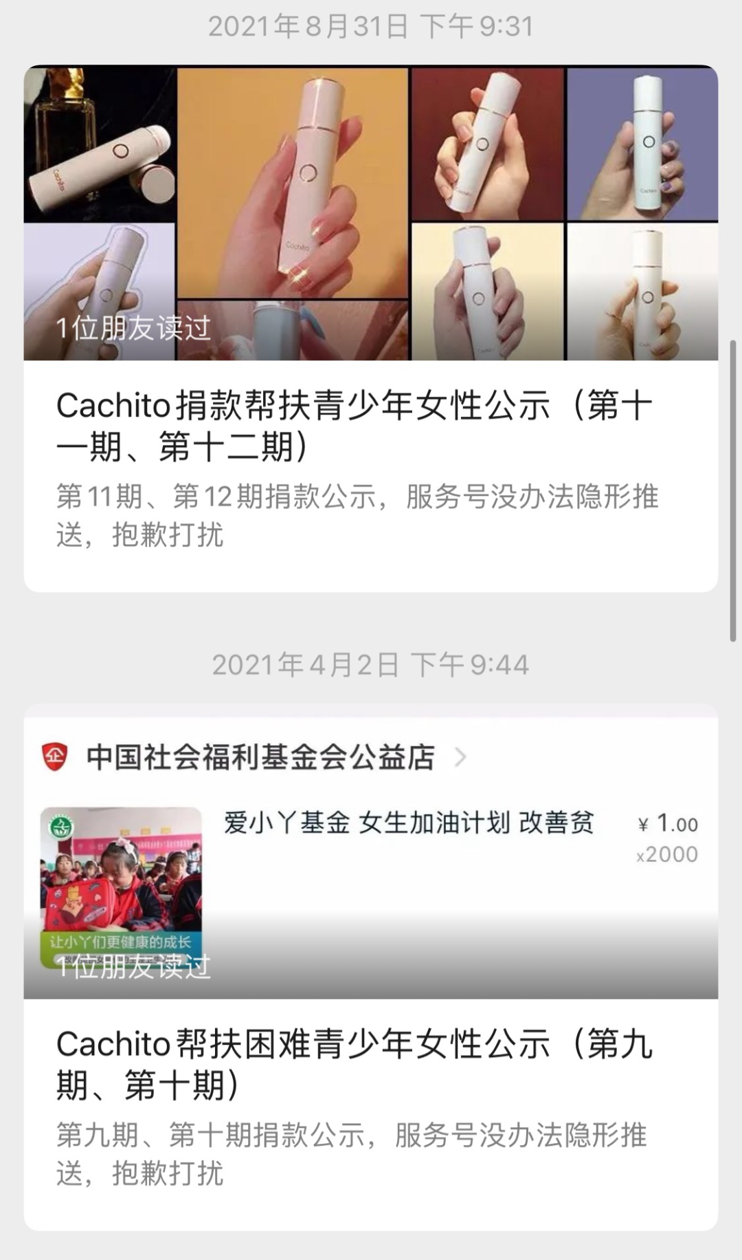 大部分内容是关于帮扶青少年女性的捐款公示。