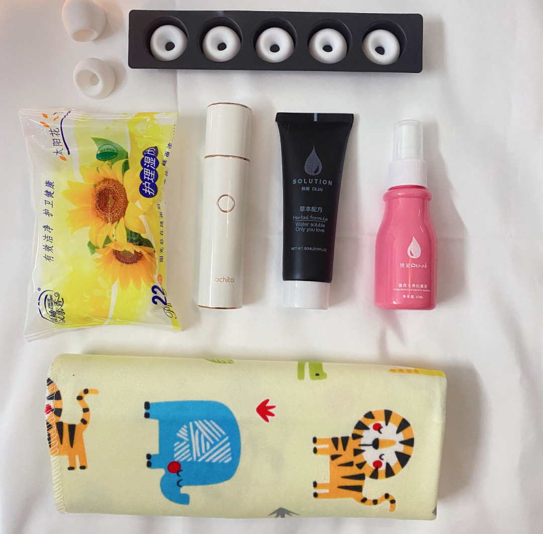 不仅赠送有润滑液、玩具喷液、湿巾,还配了个防漏垫。
