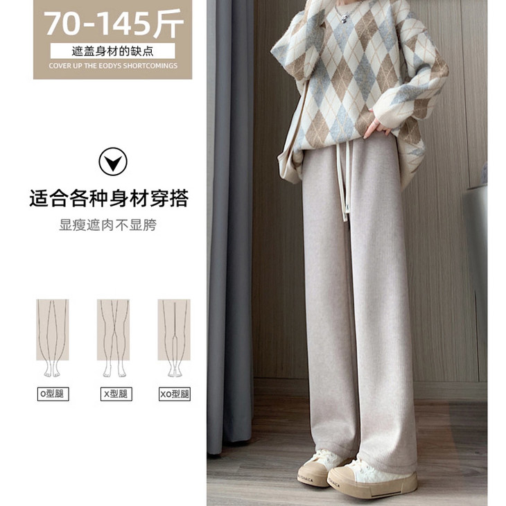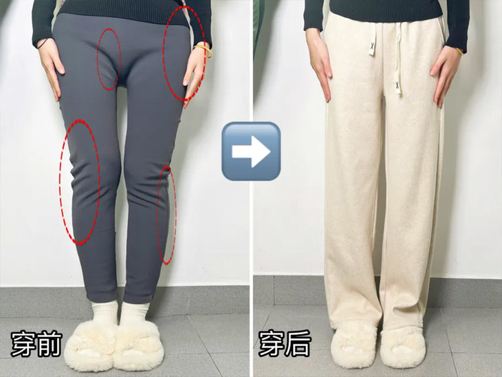 文案:梨型身材的救星!仿羊绒面料有质感显高级 😍直筒裤型特别藏肉,可以减少臃肿厚重感~能穿一整个冬天!