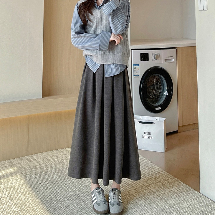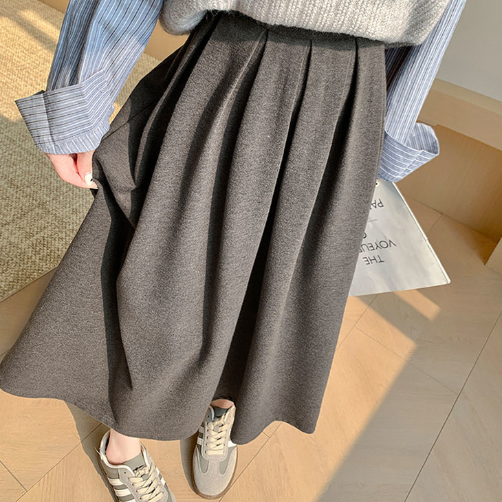 文案:仙女标配秋冬战裙🧚♀️这条百褶裙真的太神仙了!版型上身巨巨遮胯显瘦,下半身胖的姐妹完全可以👍毛呢自带厚度,既保暖又不会感觉臃肿🙈