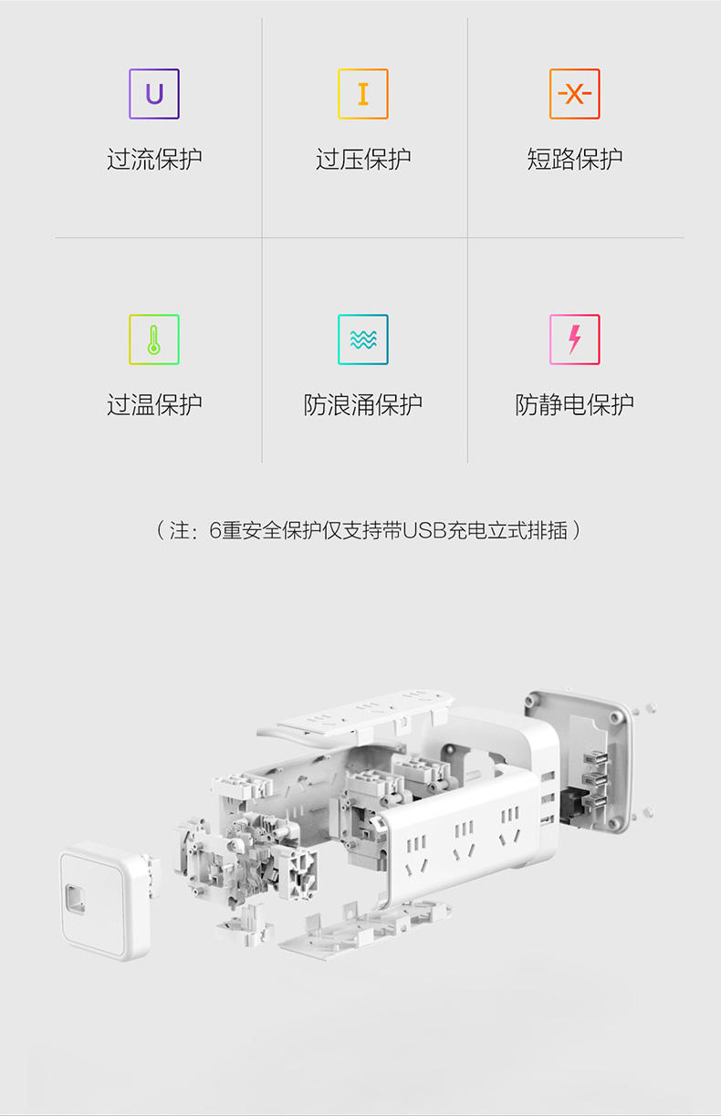 拥有智能匹配电流功能的排插,可以根据识别出来的受电设备的类别去进行电流匹配和输出,这样充电时的充电效率就可以达到原装5V充电适配器的效率,以手机最合适的电流给它充电,就更快,也更安全了。