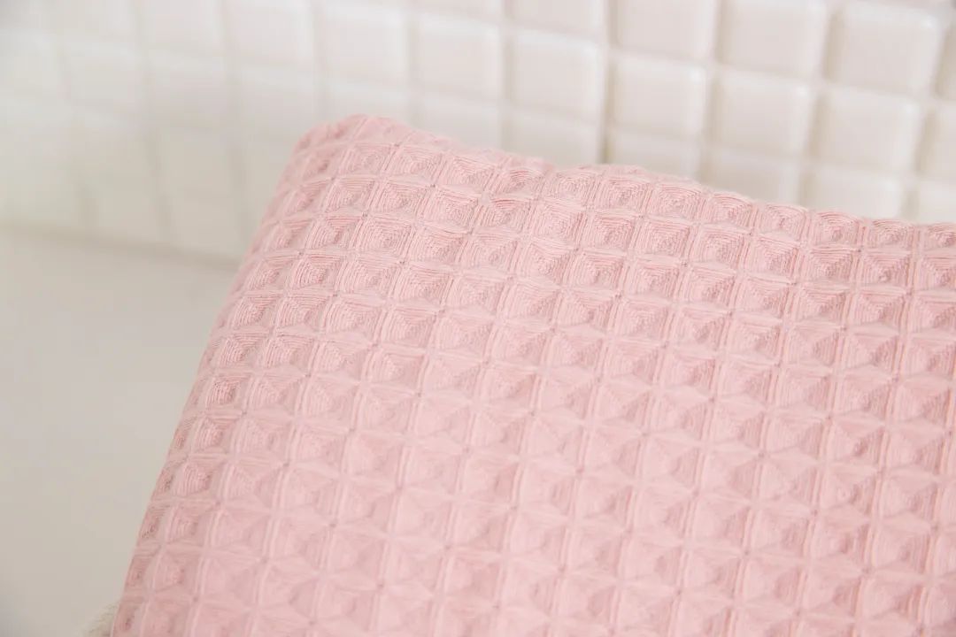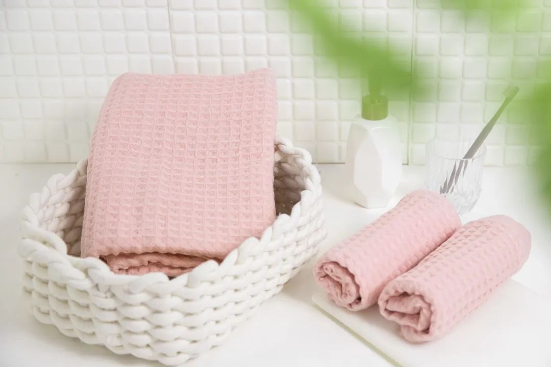 它家浴巾我也在用,它们给浴巾分了好多不同的系列,我用的是微柔和颜系列,叫它“华夫饼”可能更贴切。皮粉色浴巾上的华夫格不仅颜值高,rua起来手感也一级棒,每次洗完澡擦身的时候都觉得软绵绵的好舒糊。