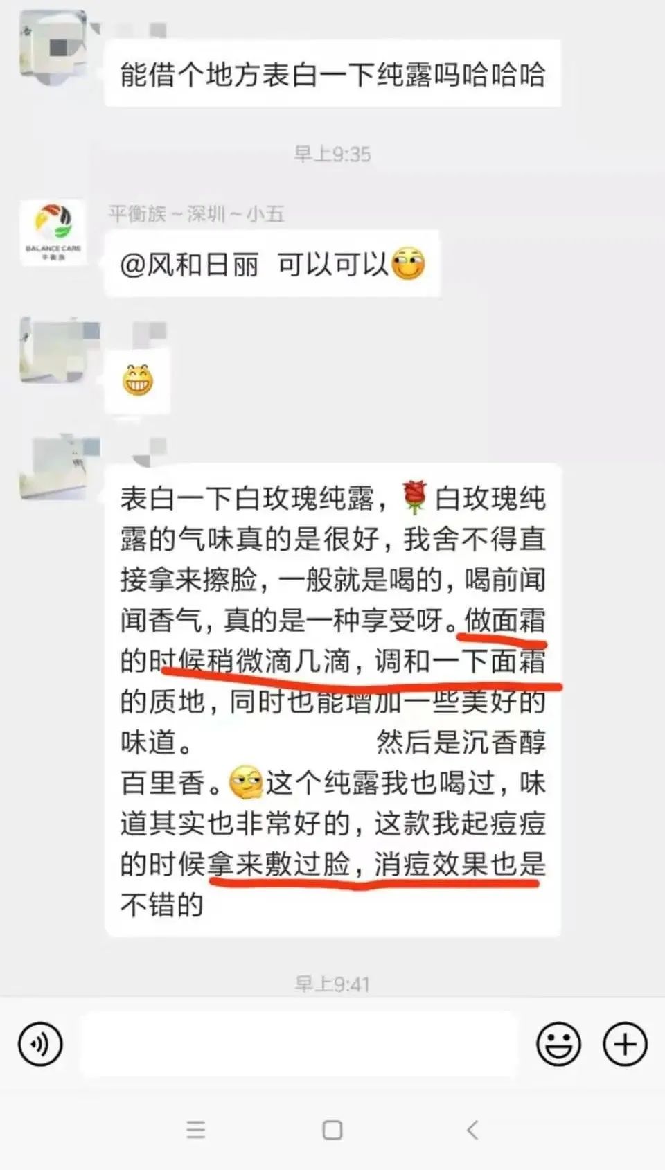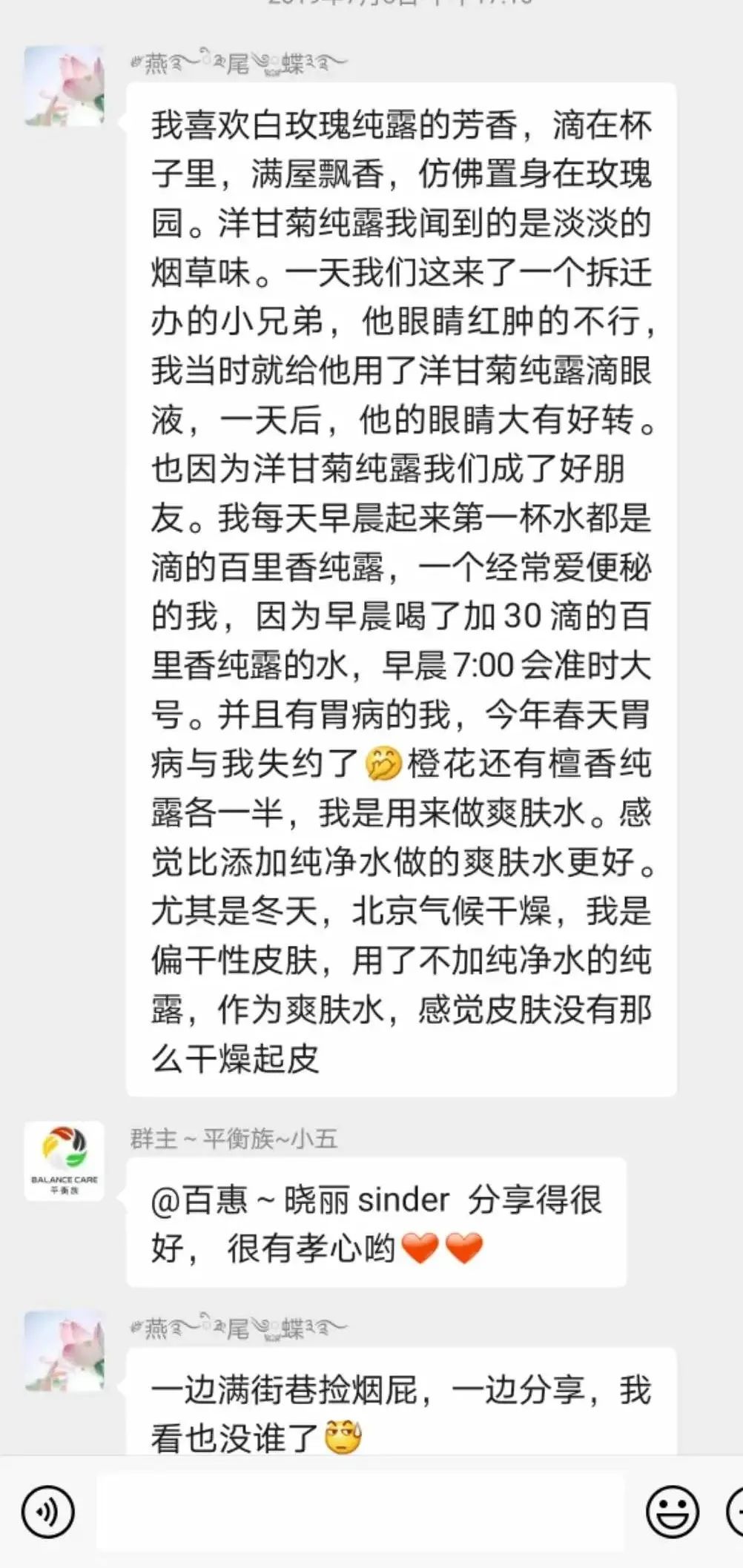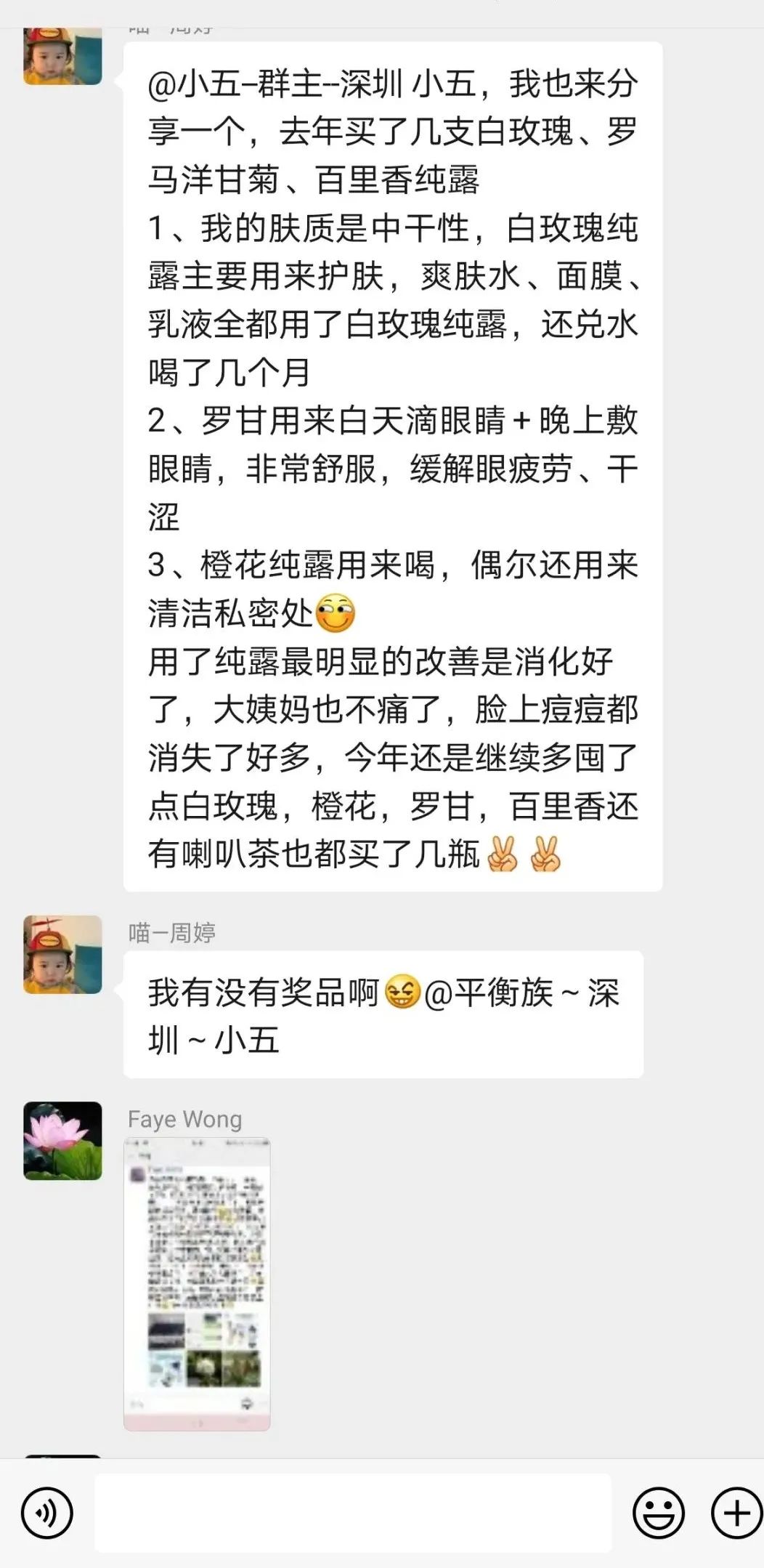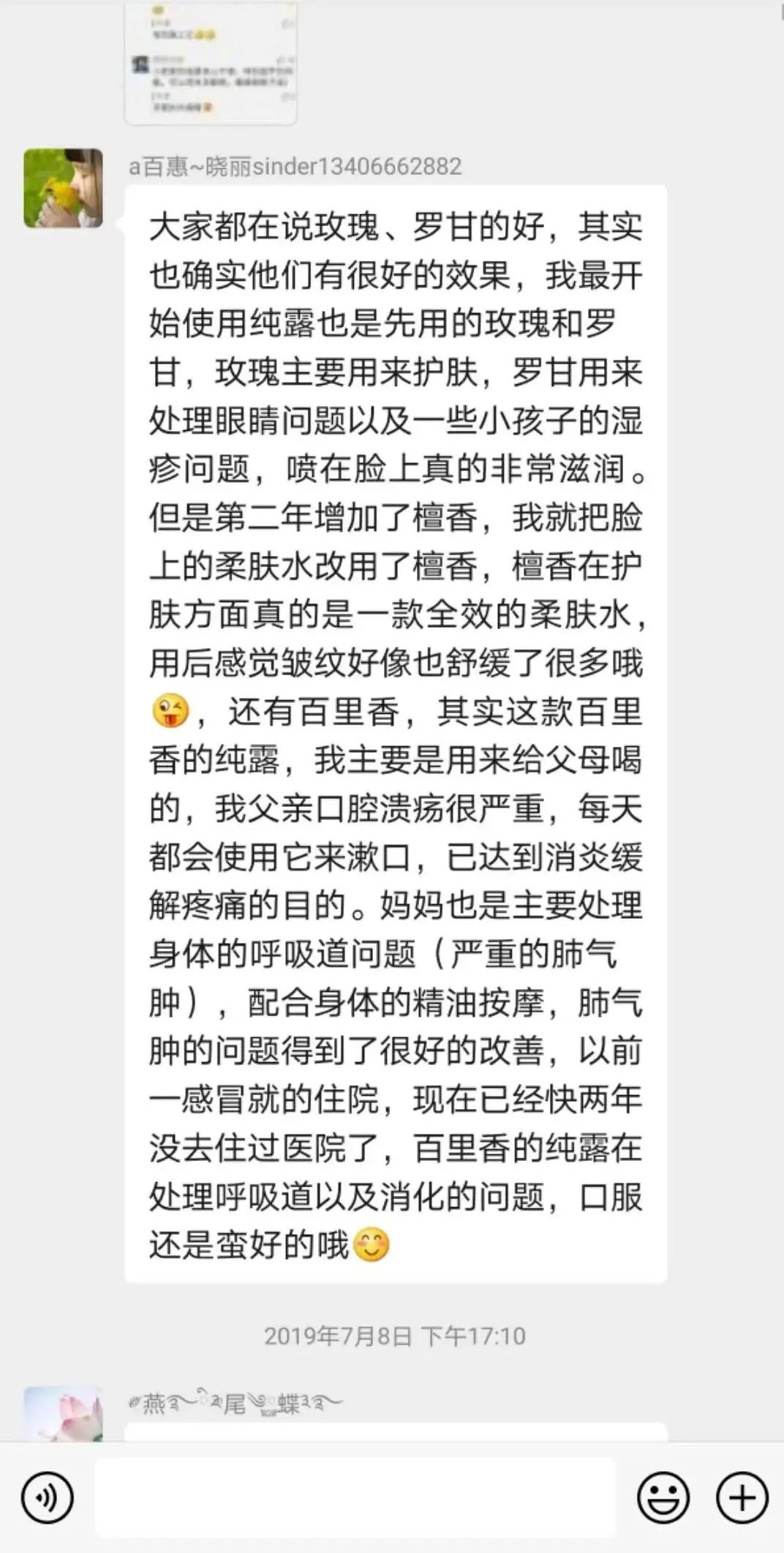整体上来说是一款不可多得非常棒的护肤纯露,对油腻、痘痘、痤疮性皮肤非常适合,可以跟白玫瑰、檀香、橙花等搭配,敏感性皮肤使用的时候,需要注意稀释蒸馏水后再用,或者做敏感测试。