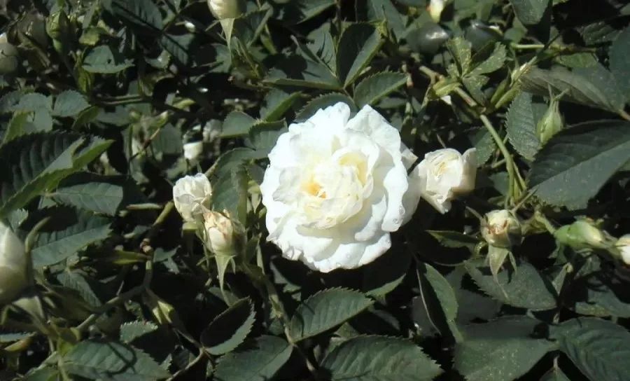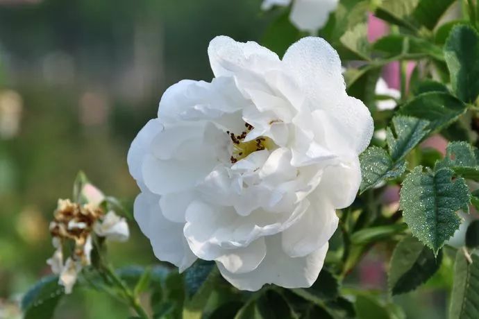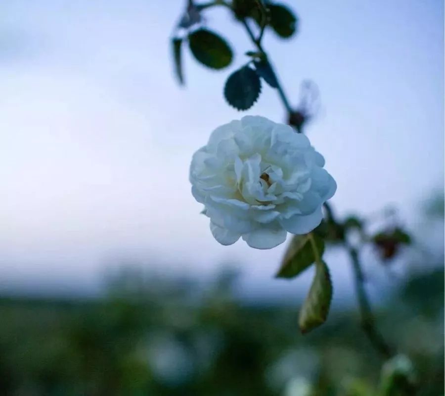 白玫瑰柔软的花瓣中微微泛着粉晕,金色的花蕊,柔嫩而含蓄,在枝头不是盛放,而是娇羞的停留。如果大马士革粉玫瑰香气丰盛,那是成熟女人的味道。而白玫瑰,则是个少女,甜美中带着微微如水果酒般的发酵,圣洁而温柔。